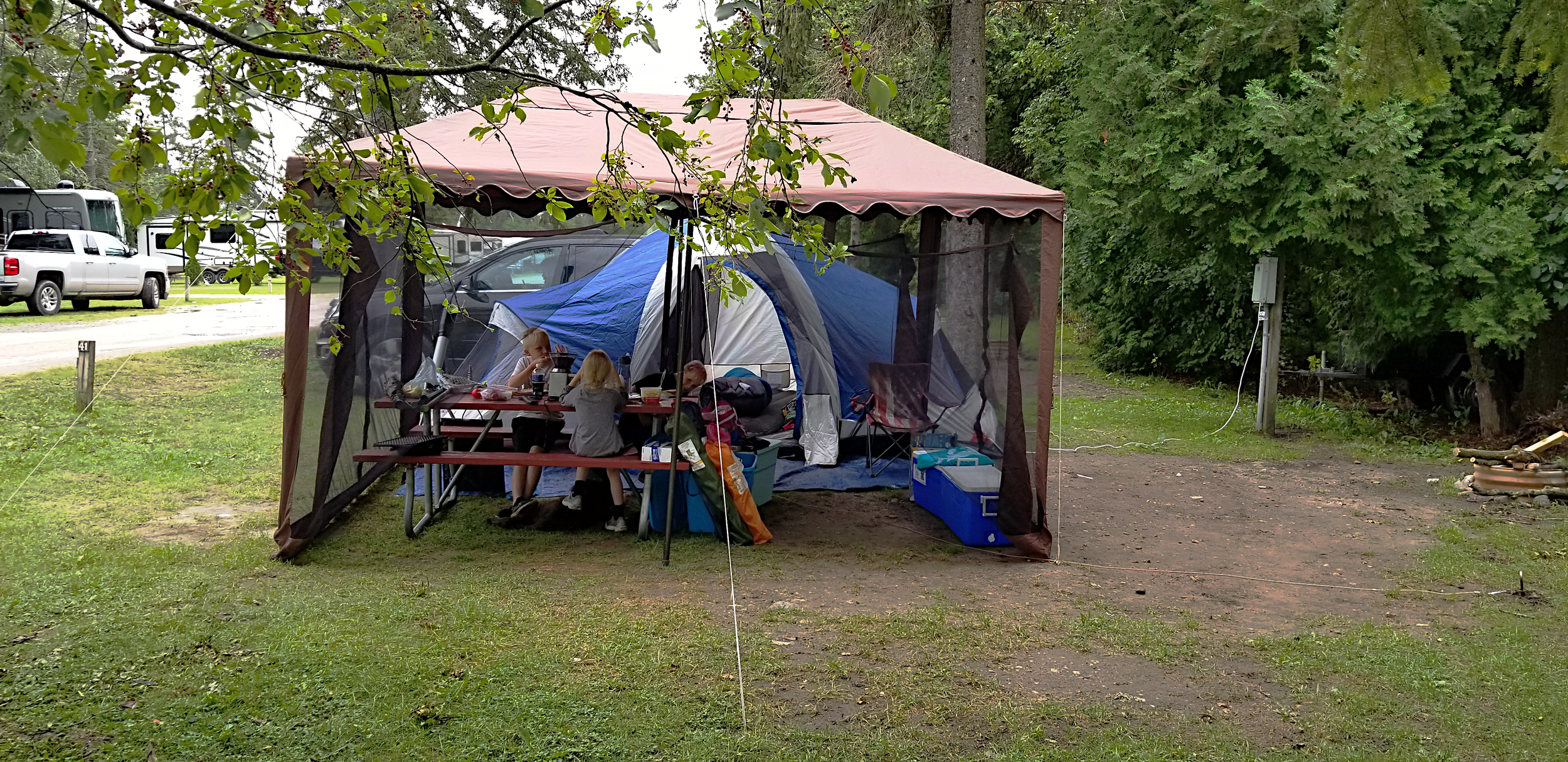 The next day we took a wonderful trip back to the UP. Headed to Whitefish Pointe, and Tahquamenon Falls (both the upper and the lower). The kids had fun and it had been years since I was there and the SO has never been there. So good time all around. On the way back to the campground we stopped at a fish market. Hoping to get the good smoked fish from up North. Who knew they would close at 4:30p on a Friday. So we went back across the bridge to the Campground for a delicious meal of Steak and Corn on the Cob over the fire.